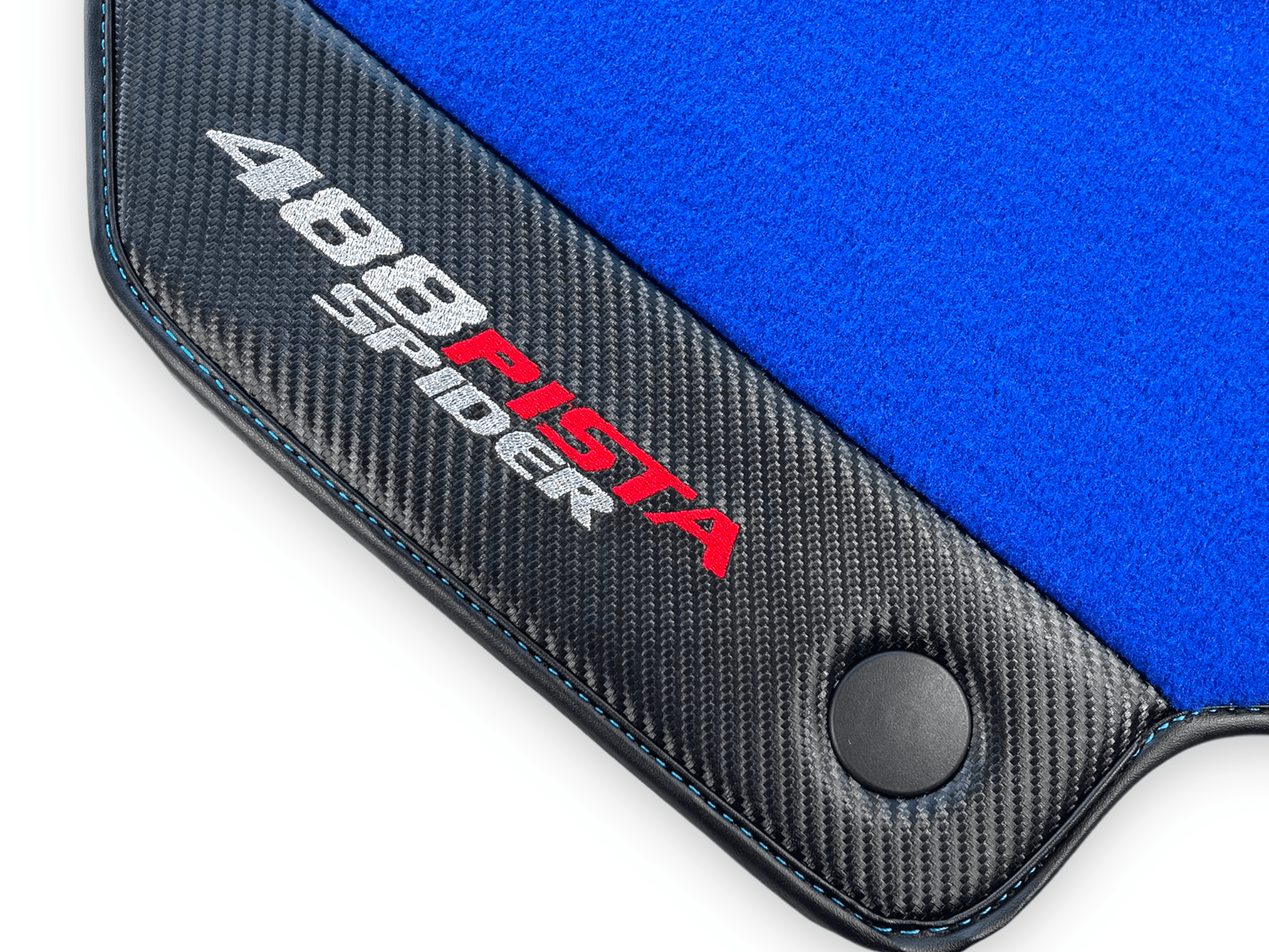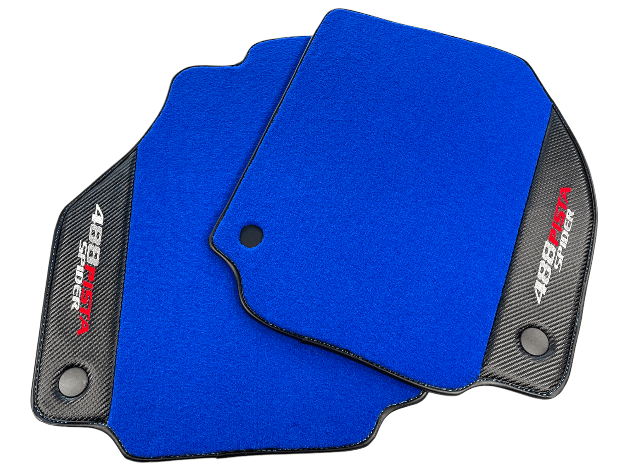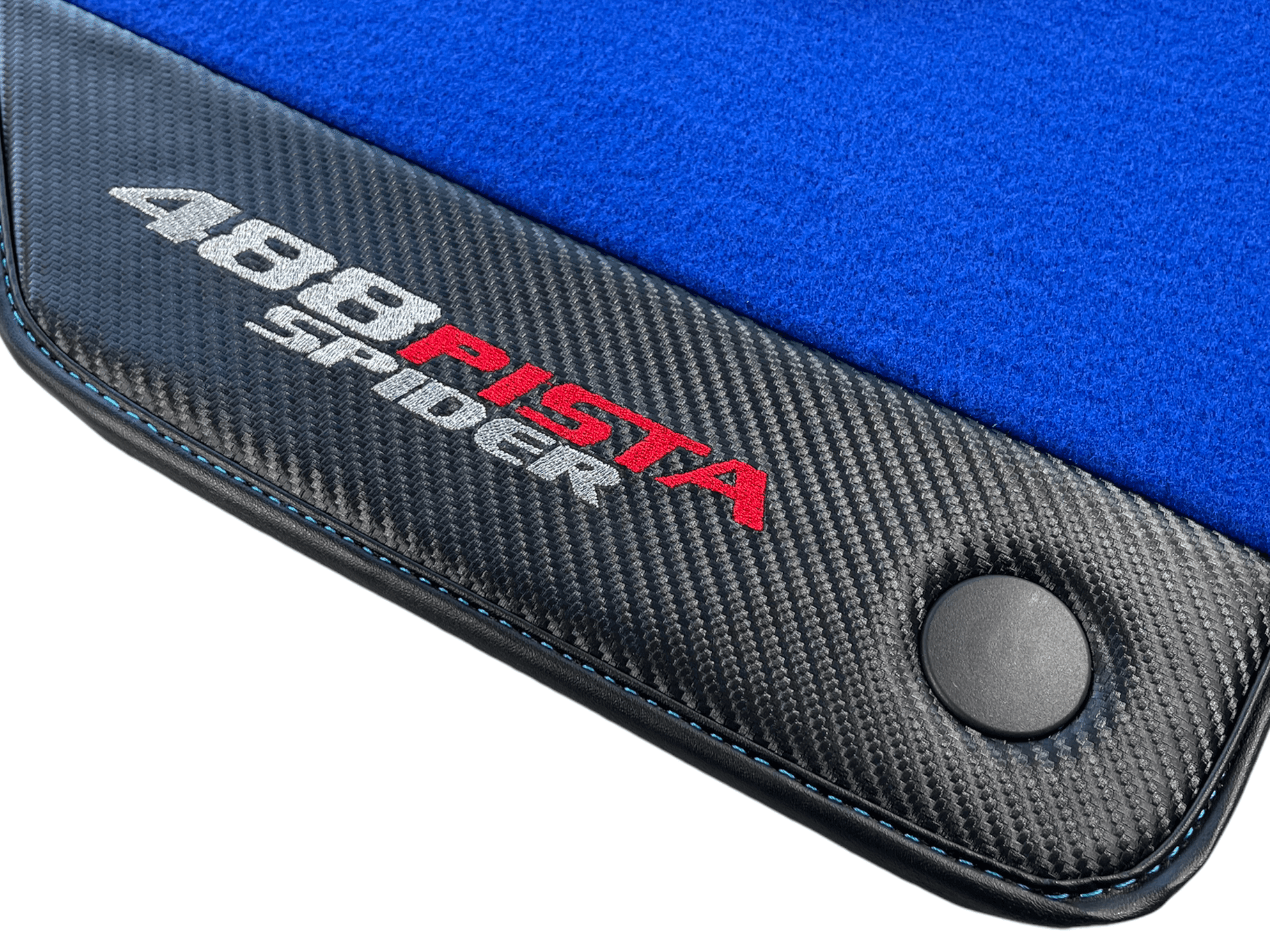 عزز منظر سيارتك فيراري 488 بيستا سبايدر مع سجاد السيارات الفاخر الأزرق هذا. مصنوعة من جلد ألياف الكربون، توفر هذه السجادات لمسة من الأناقة، بالإضافة إلى المتانة والحماية لقمرة سيارتك. قم بترقية تجربة قيادتك مع هذه السجادات المصنوعة بشكل احترافي.