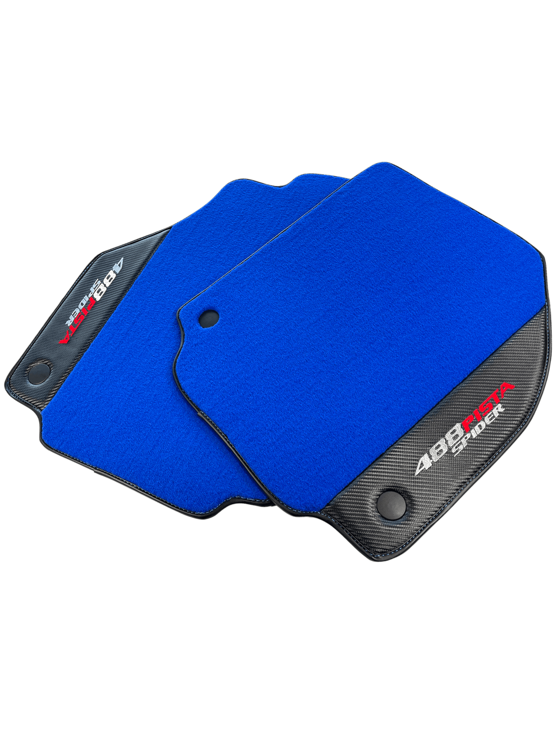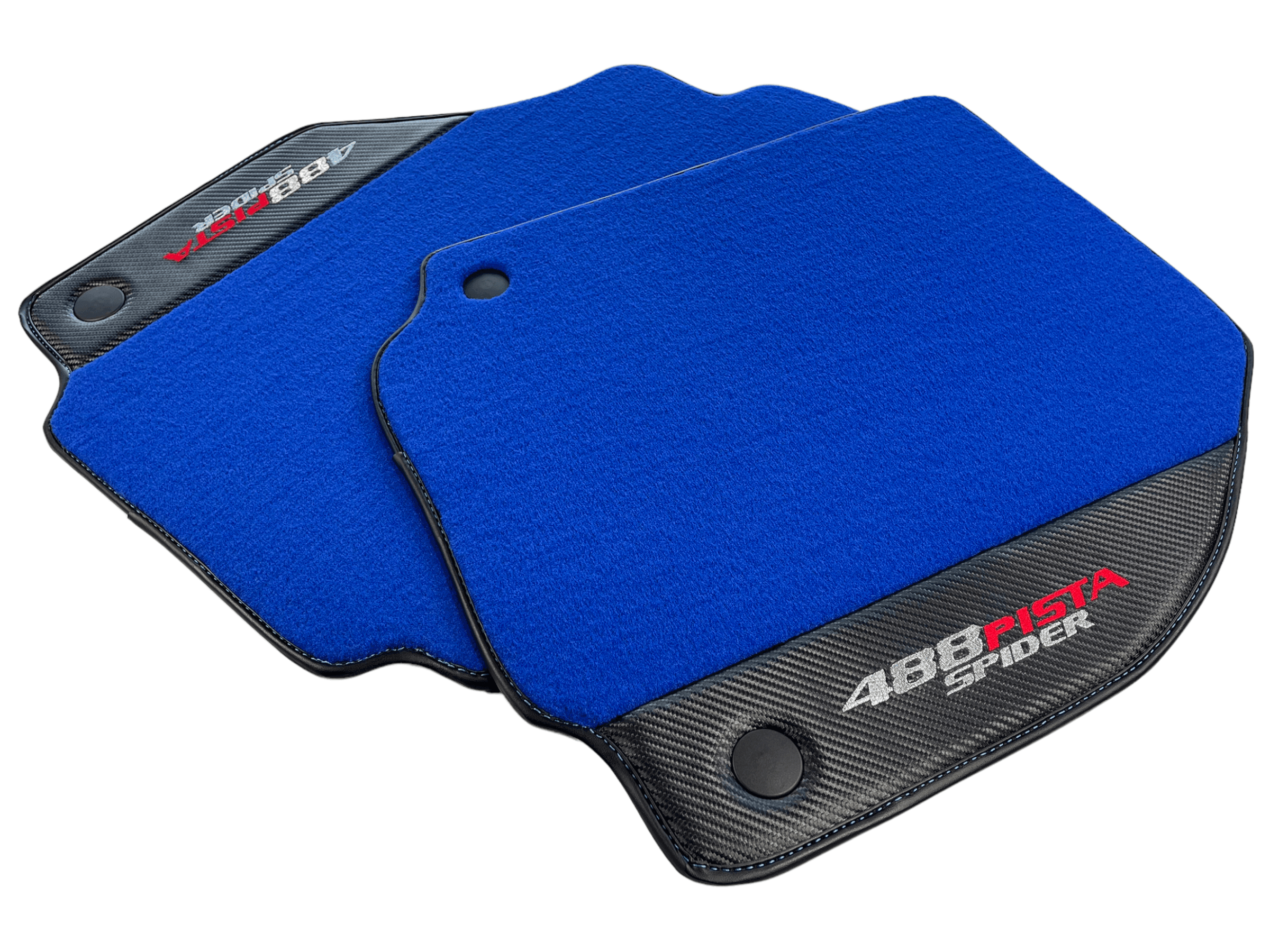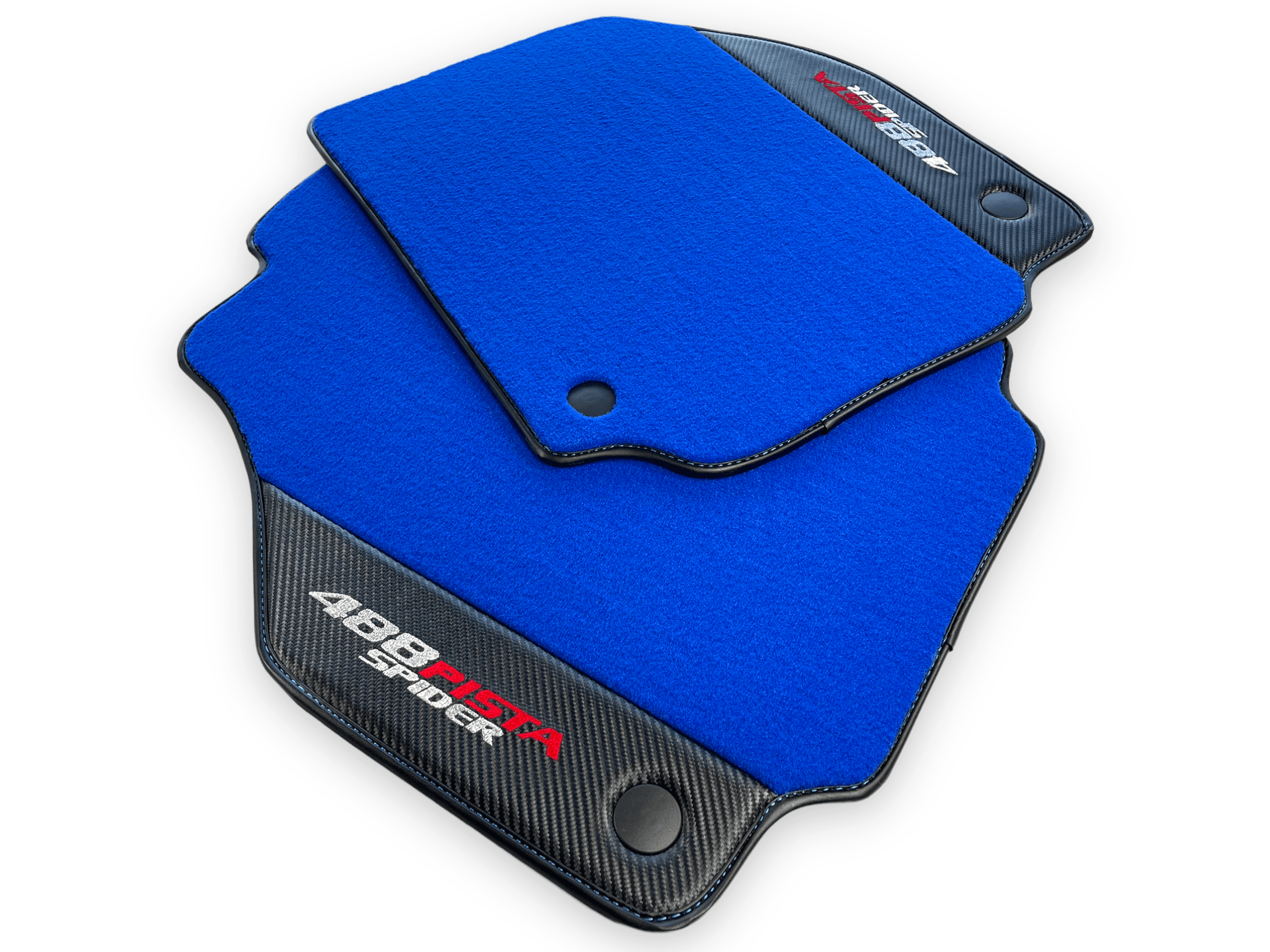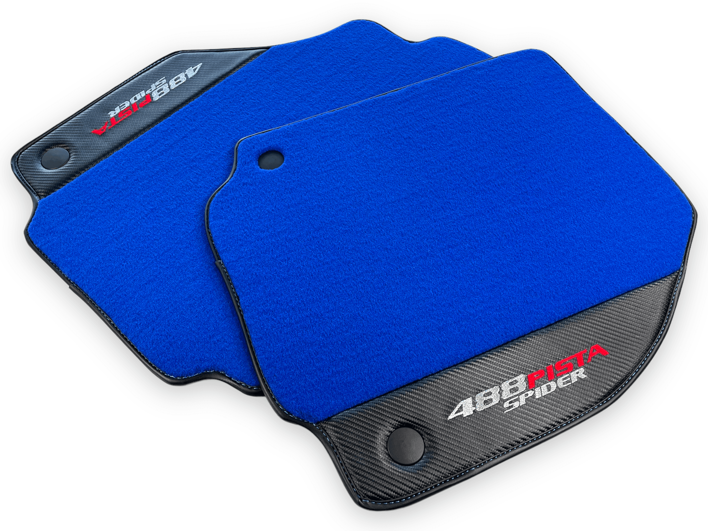 عزز منظر سيارتك فيراري 488 بيستا سبايدر مع سجاد السيارات الفاخر الأزرق هذا. مصنوعة من جلد ألياف الكربون، توفر هذه السجادات لمسة من الأناقة، بالإضافة إلى المتانة والحماية لقمرة سيارتك. قم بترقية تجربة قيادتك مع هذه السجادات المصنوعة بشكل احترافي.