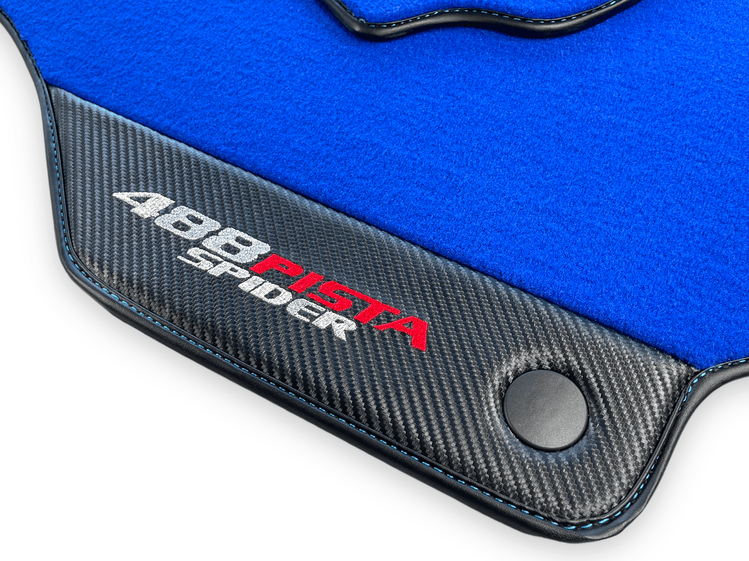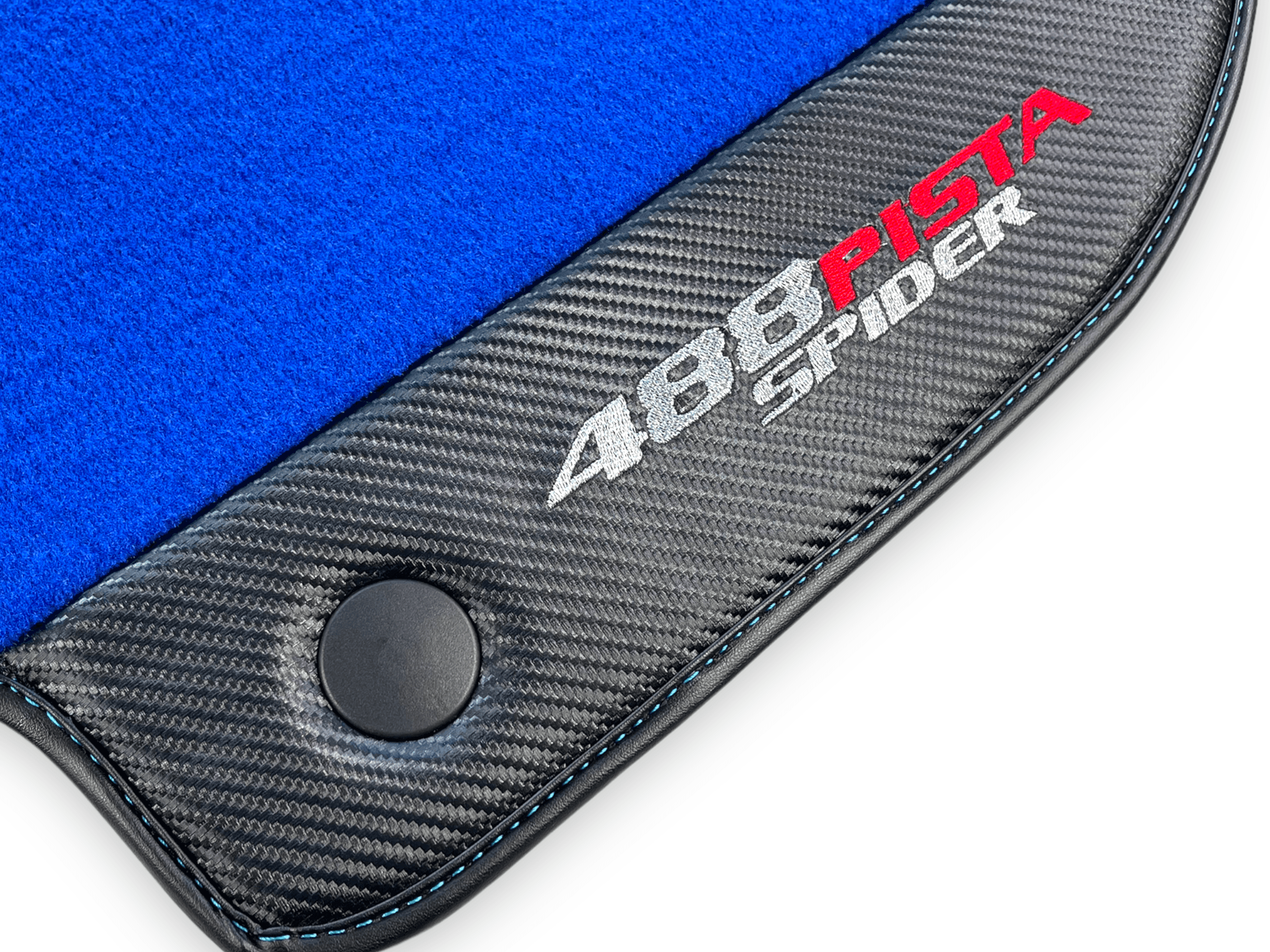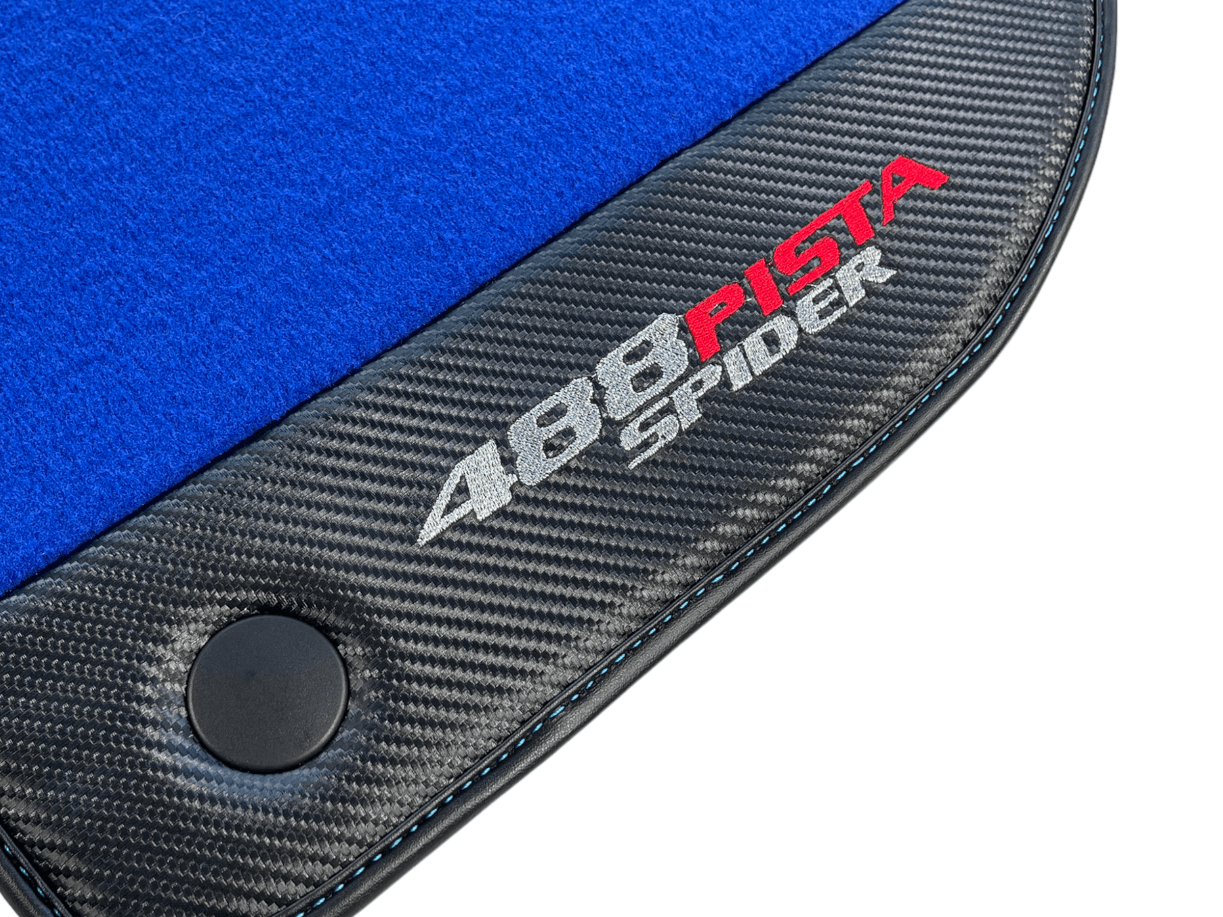 سجاد سيارات زرقاء لفيراري 488 بيستا سبايدر 2019-2021 مع جلد ألياف الكربون