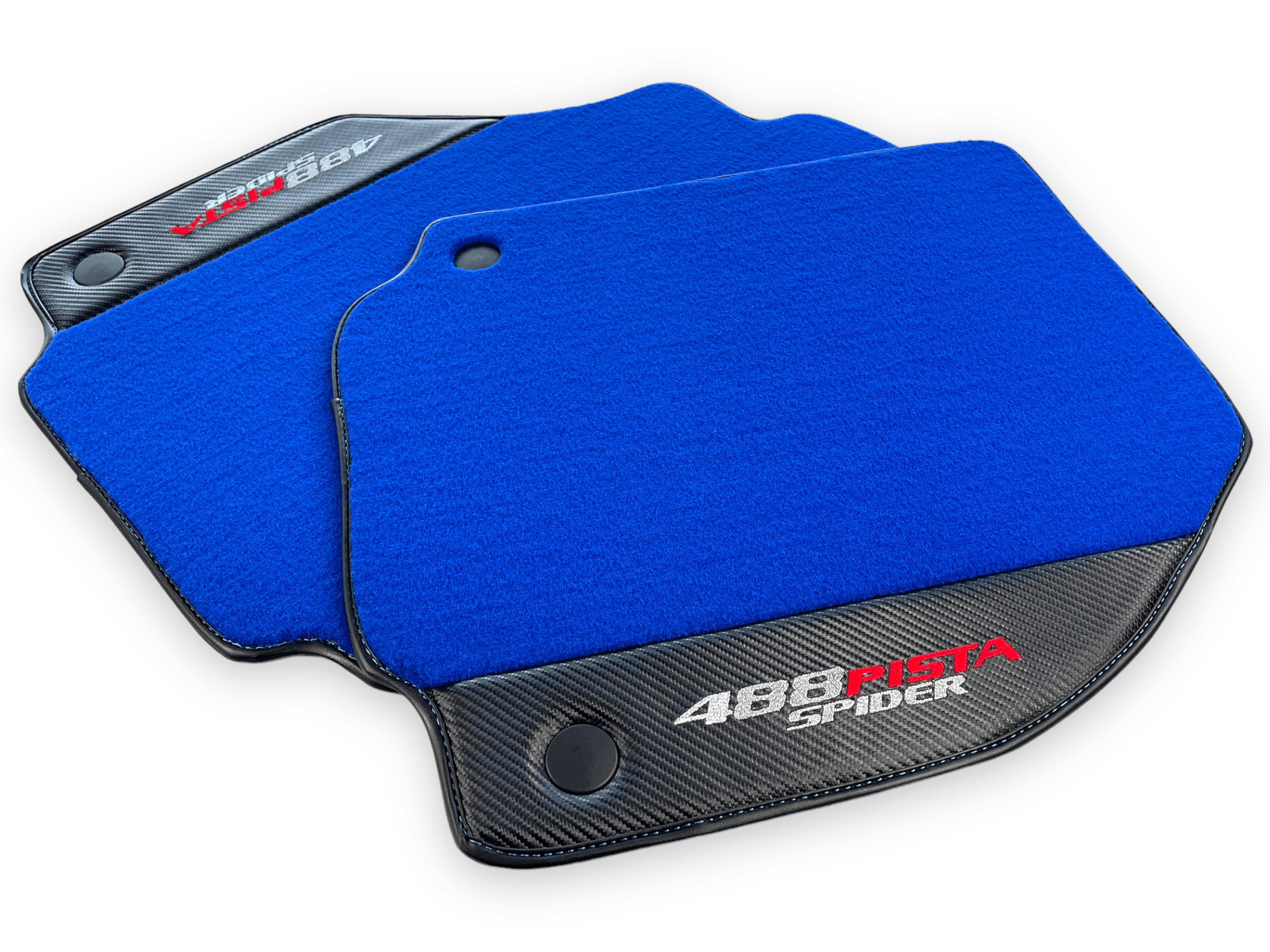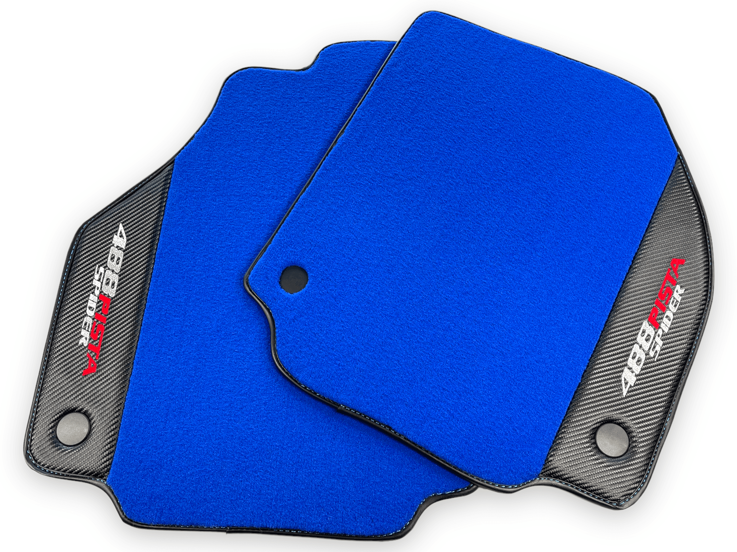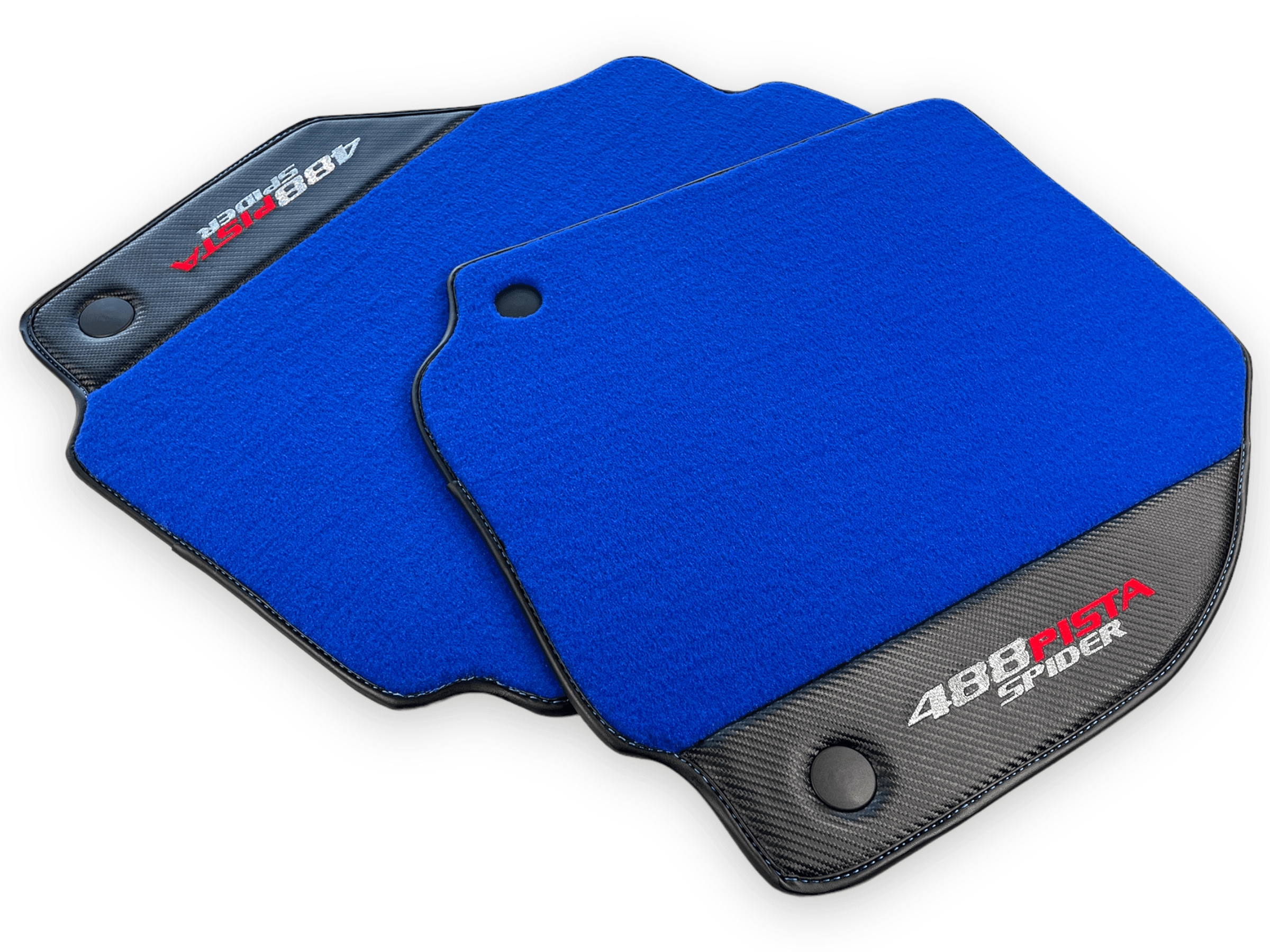 سجاد سيارات زرقاء لفيراري 488 بيستا سبايدر 2019-2021 مع جلد ألياف الكربون