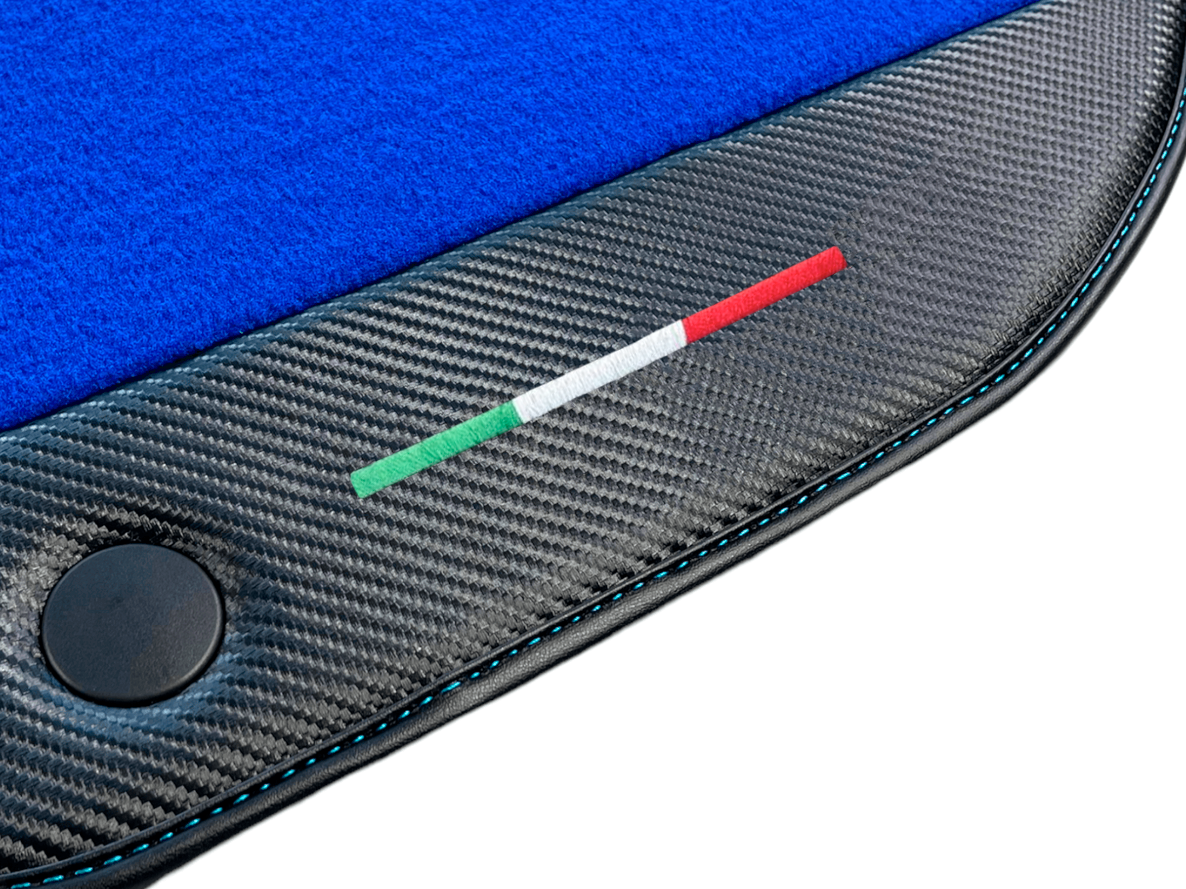 قم بتحسين مظهر سيارتك فيراري 488 بيستا سبايدر مع هذه الحصائر الزرقاء الفاخرة. مصنوعة من جلد ألياف الكربون، تضيف هذه الحصائر لمسة من الأناقة كما أنها توفر المتانة والحماية لغر الصفيح الخاص بسيارتك. قم بترقية تجربة القيادة الخاصة بك مع هذه الحصائر المصممة بشكل احترافي.