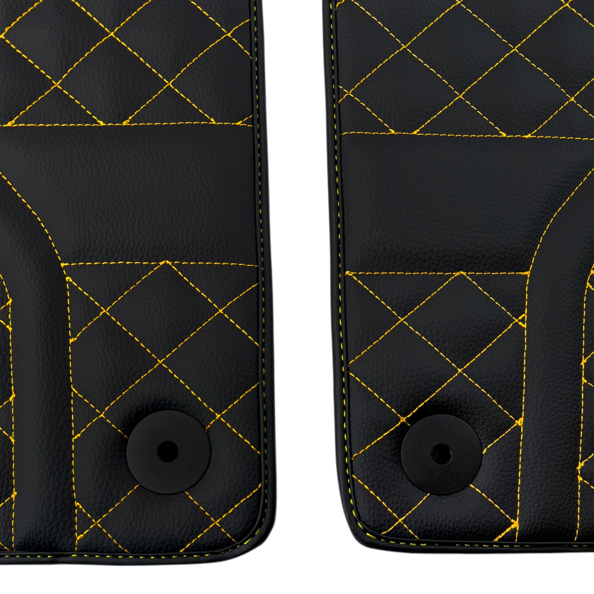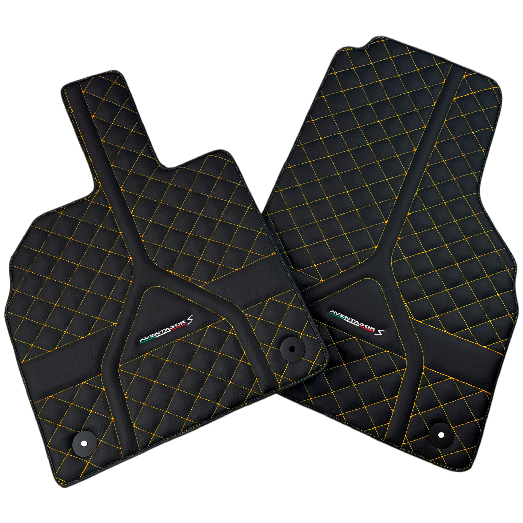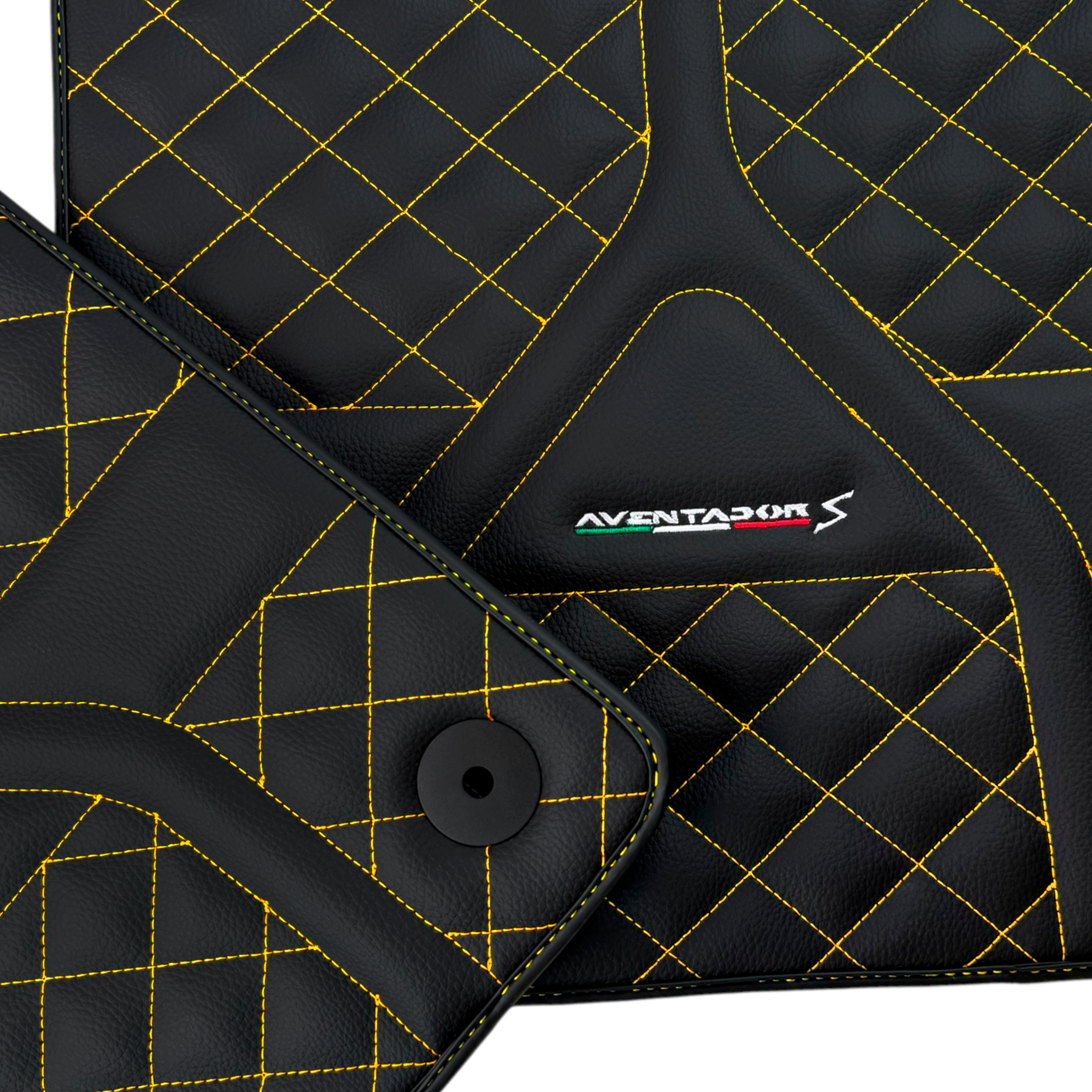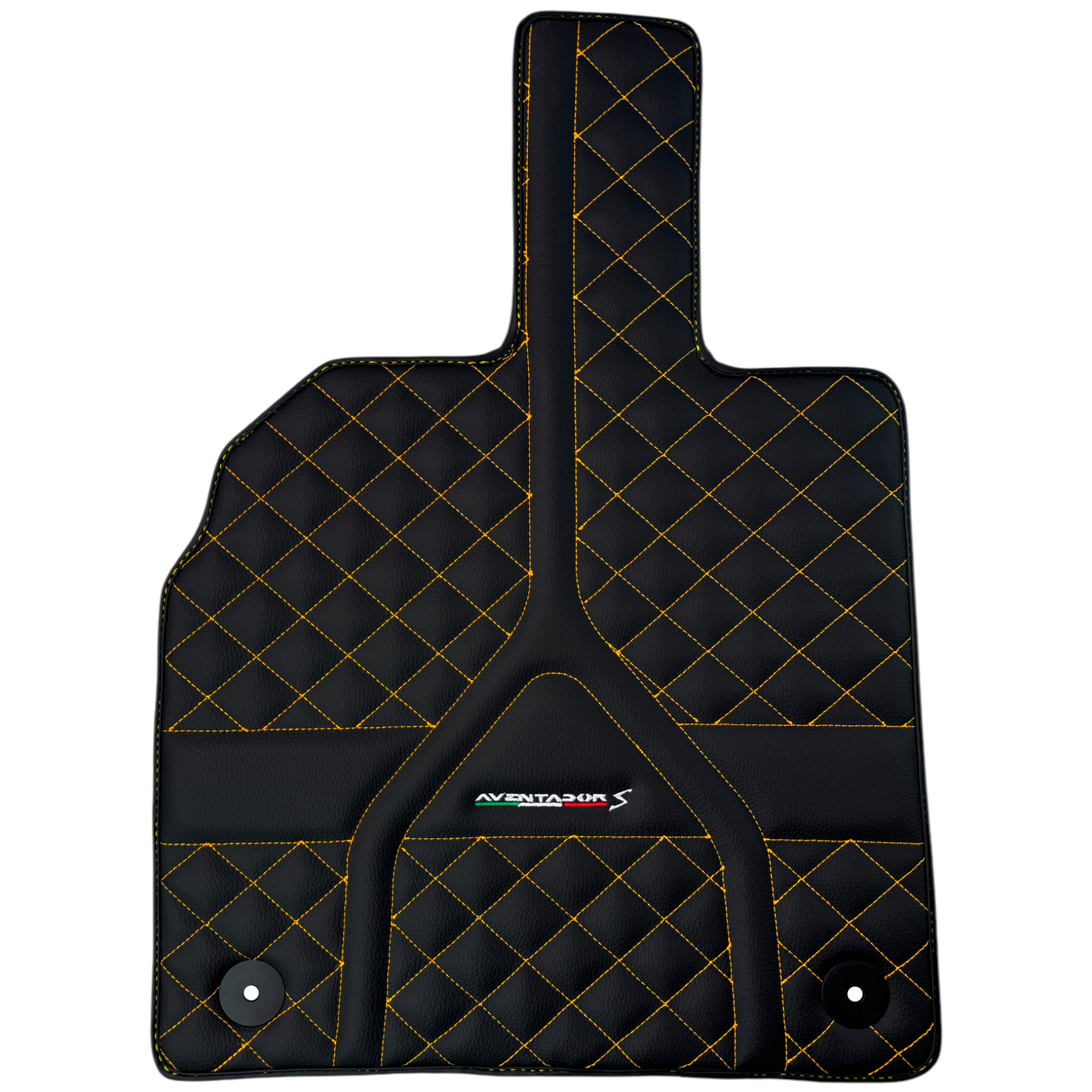 سجاد سيارات جلدية سوداء قابلة للتخصيص لسيارة لامبورغيني أفينتادور إس | خياطة صفراء