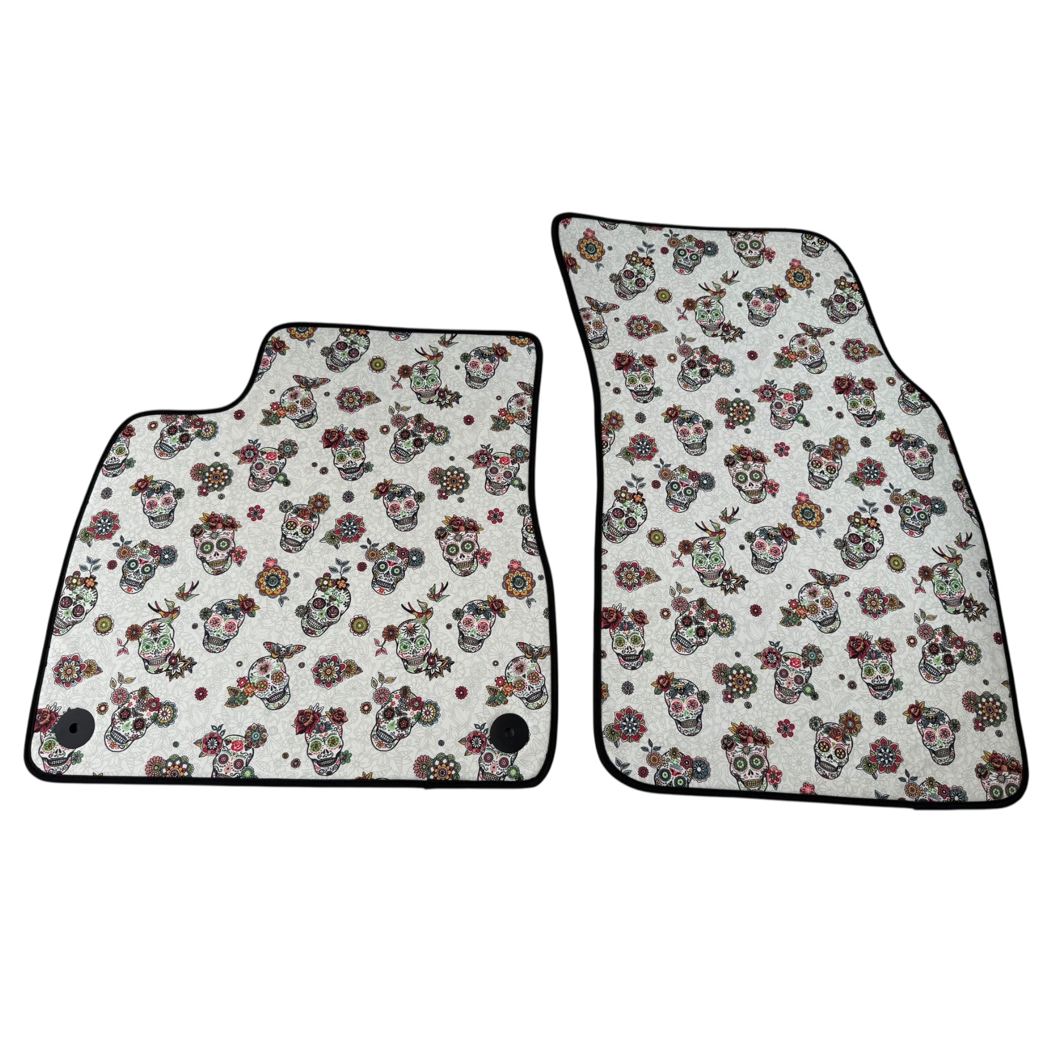 White Floral Skull Design Car Floor Mats for Lamborghini Urus (2018-2026)