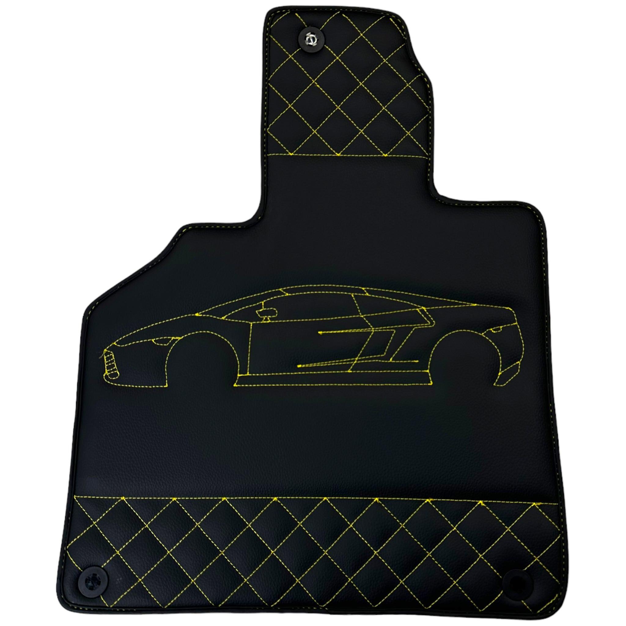 حصائر سيارة جلدية سوداء للامبورجيني جالاردو بخياطة صفراء | تصميم ER56