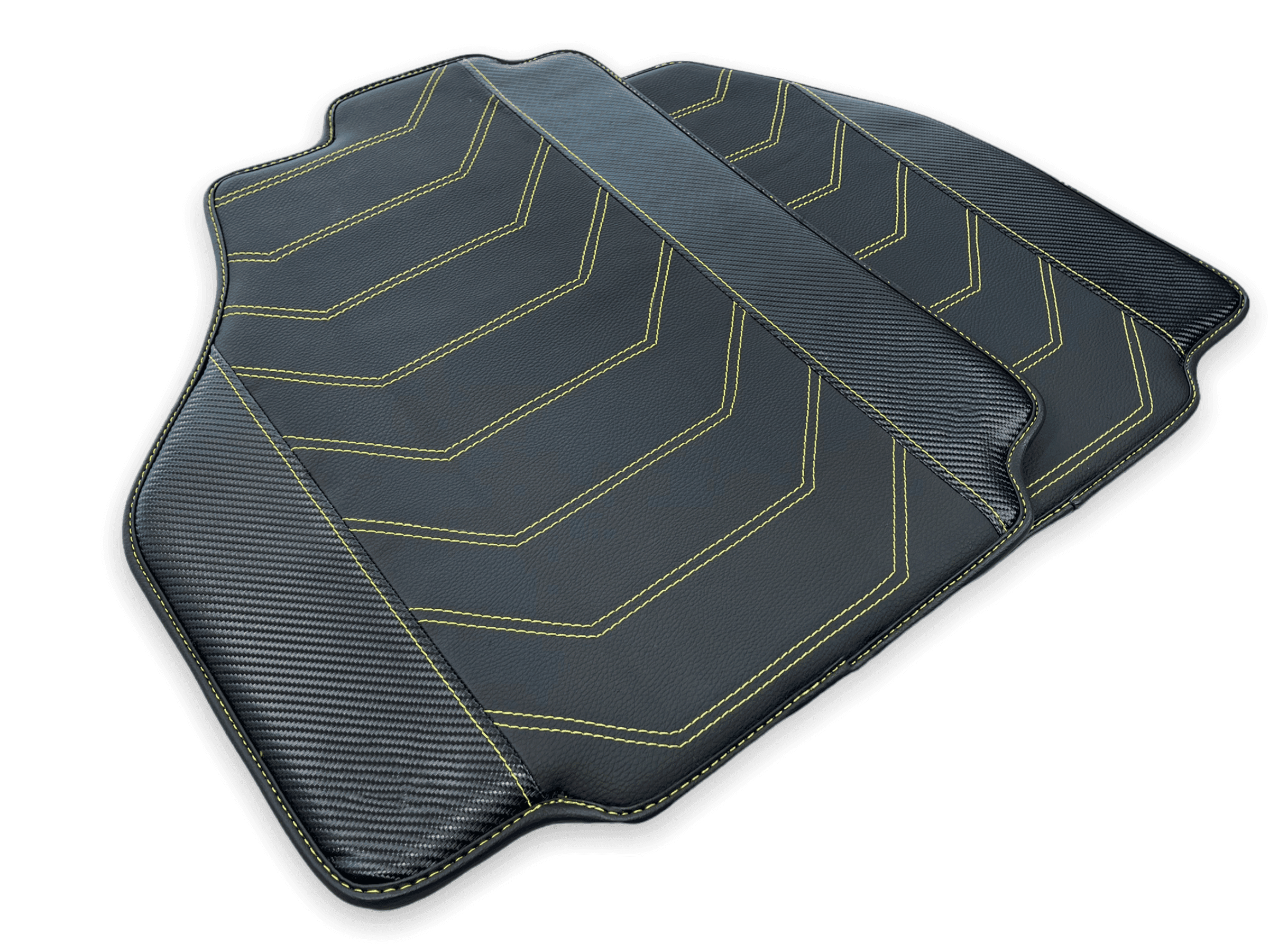 قم بترقية داخلية سيارتك فيراري 458 سبشل مع حصائرنا الجلدية السوداء الفاخرة. كاملة مع خياطة صفراء ملفتة للنظر، هذه الحصائر لا توفر فقط لمسة أنيقة، ولكن أيضًا تحمي أرضية سيارتك من الأوساخ والحطام. ملائمة مثالية لطرازات 2012-2015.