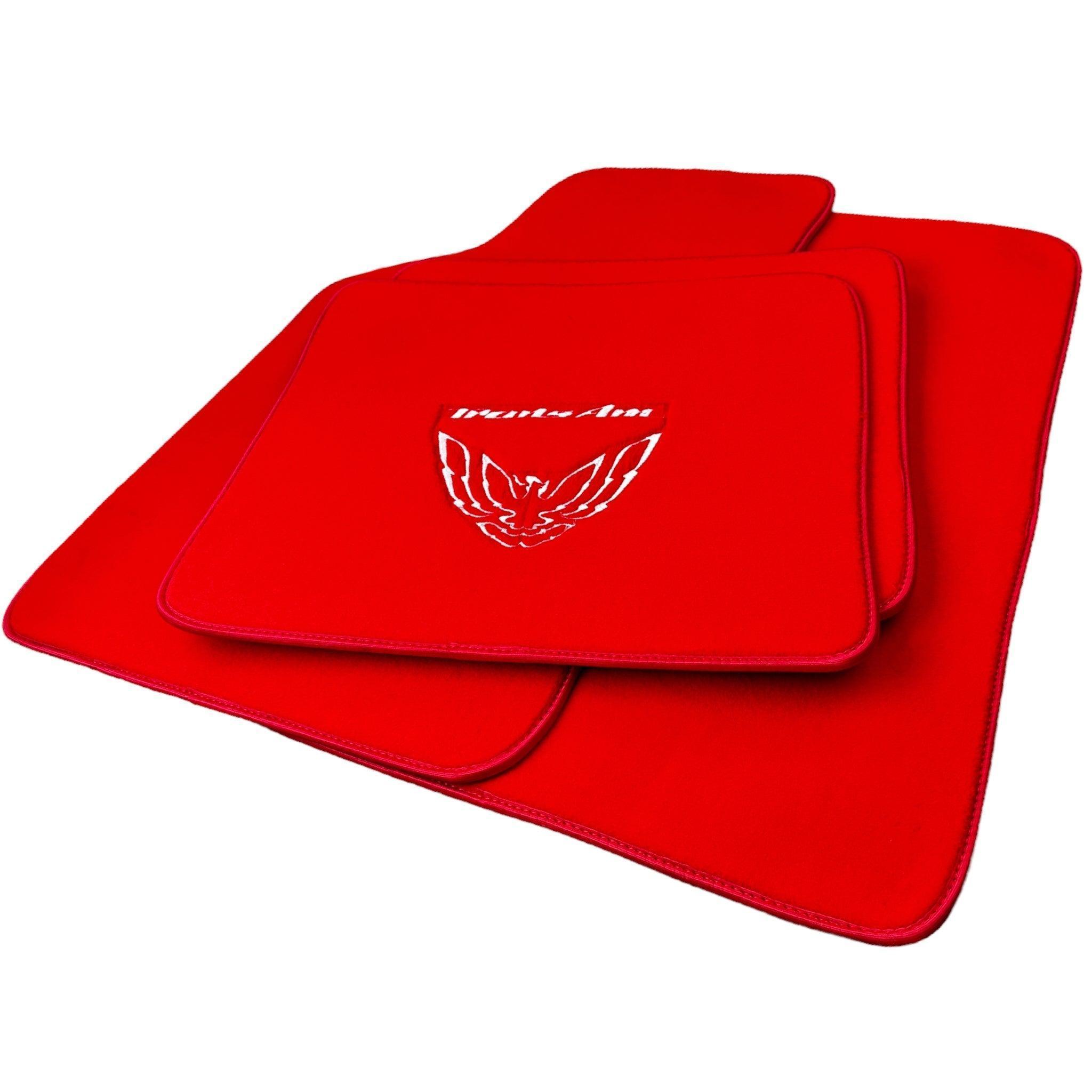 حصائر سيارات حمراء لسيارة بونتياك الجيل الأول فايربيرد (1967-1969) مع شعار ترانس أم